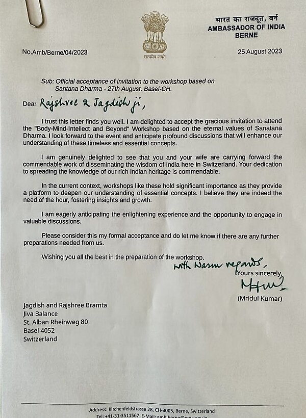 With the High commission, Ambassador Sri Mridul Kumar ji at the BMI workshop - Basel
